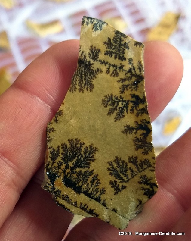 Dendrites can also be varnished with a variety of paints made specially for rocks. For most darker colored dendrites, this improves them, sometimes drastically. For some dendrites, cleaning washes off part of the picture. You just gotta know from experience. For white backgroud stones, varnishing may not help, or even make them worse.
