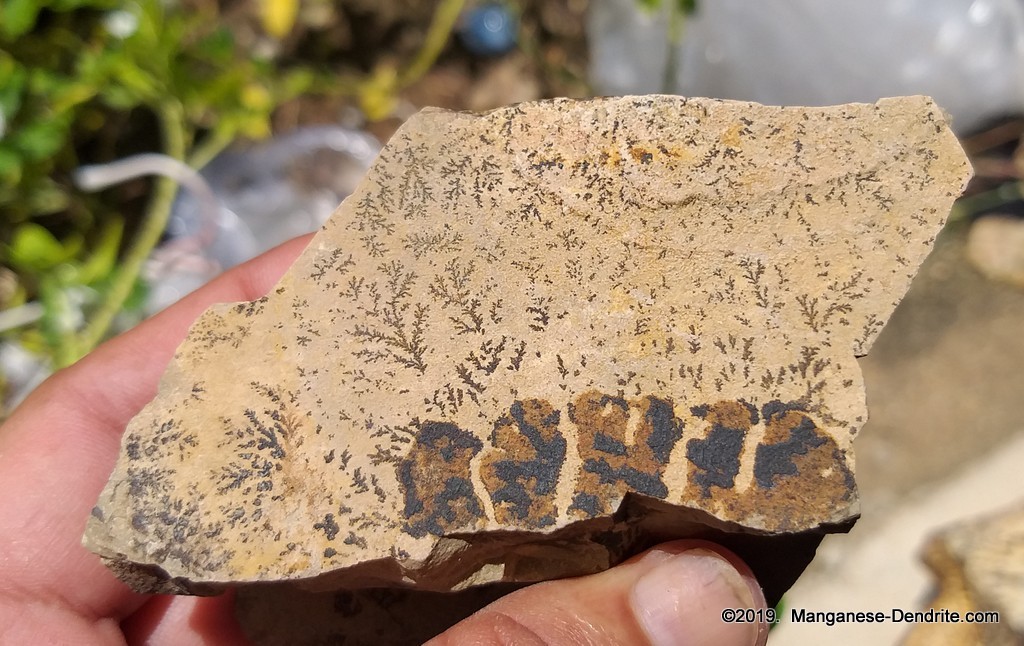 A Manganese Dendrite from the field should be cleaned with water only, unless it is covered in dirt. Then you can gently brush it off under running water. Then dried in the sun for several hours, making sure to dry all sides.
